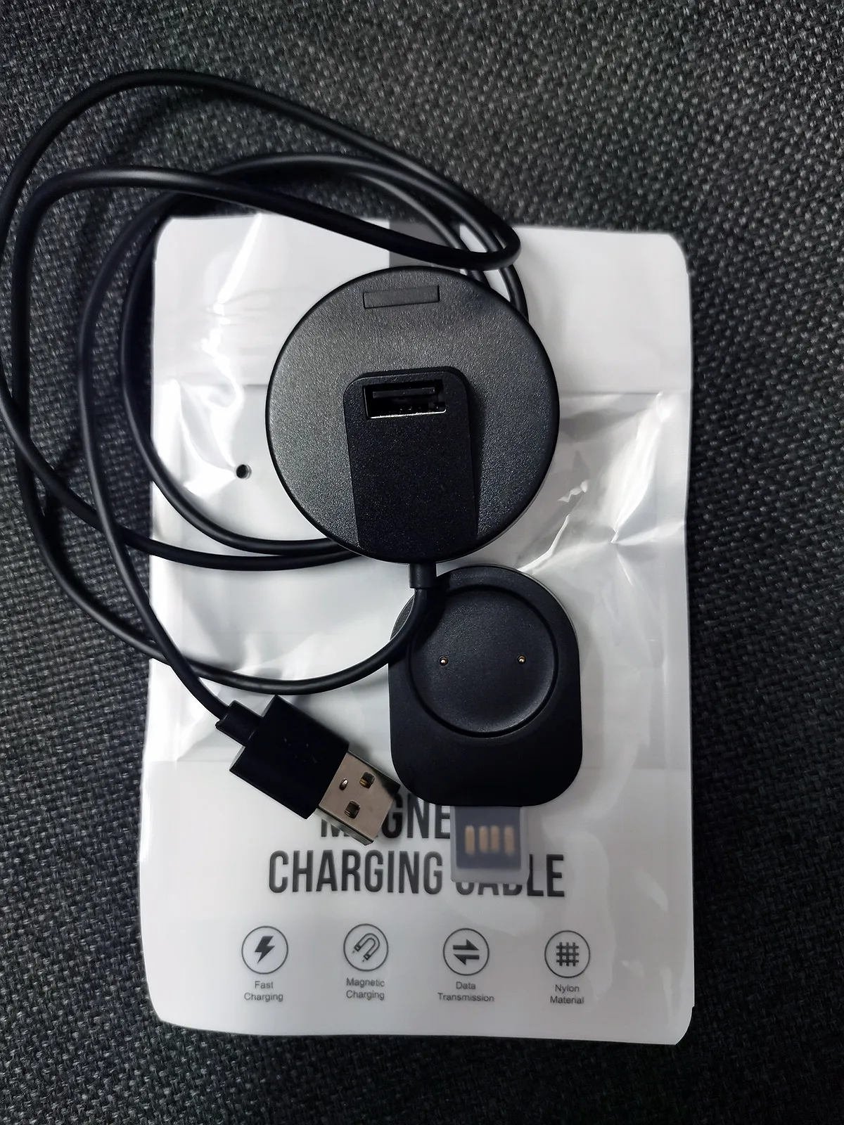 Прикольная зарядка, состоит из удлинителя usb и вставки, контакты в разъеме у которой с 2х сторон. Gtr2e заряжает. Магнит не такой уж сильный — часы с керамическим браслетом тяжеловаты и сползают при малейшем толчке
