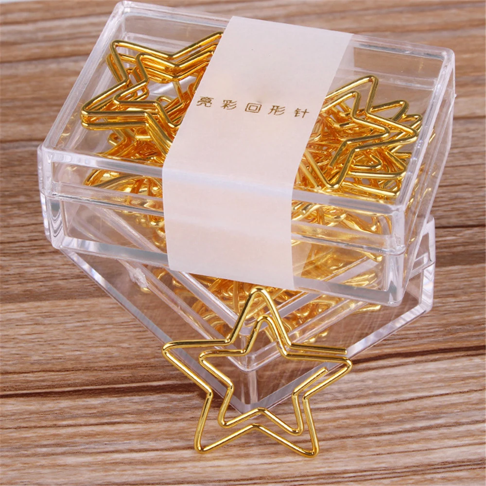 Скрепка Kawaii с пятиконечной звездой, 12 шт.кор., металлические золотистые закладки, держатель для заметок, канцелярские принадлежности, офисные аксессуары
