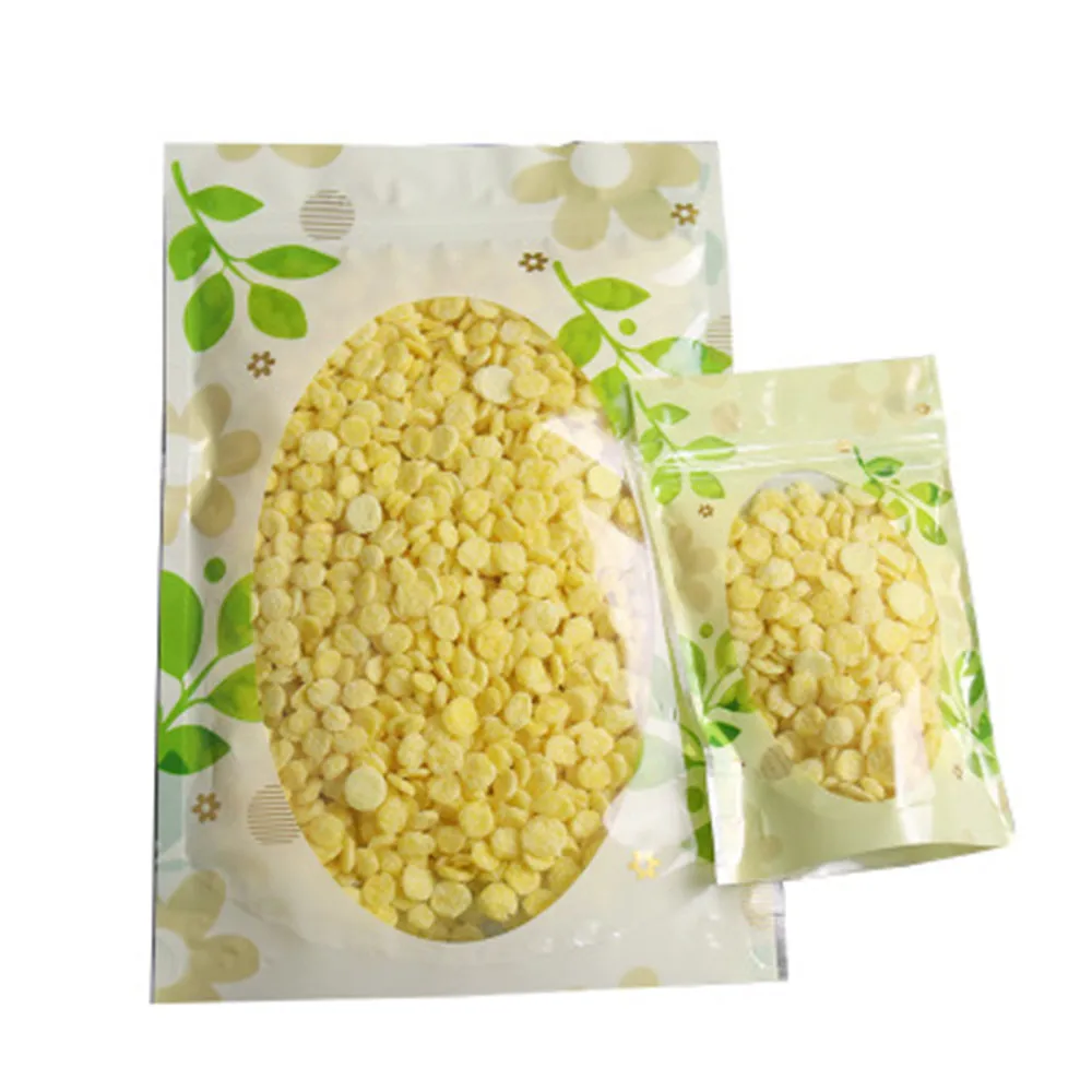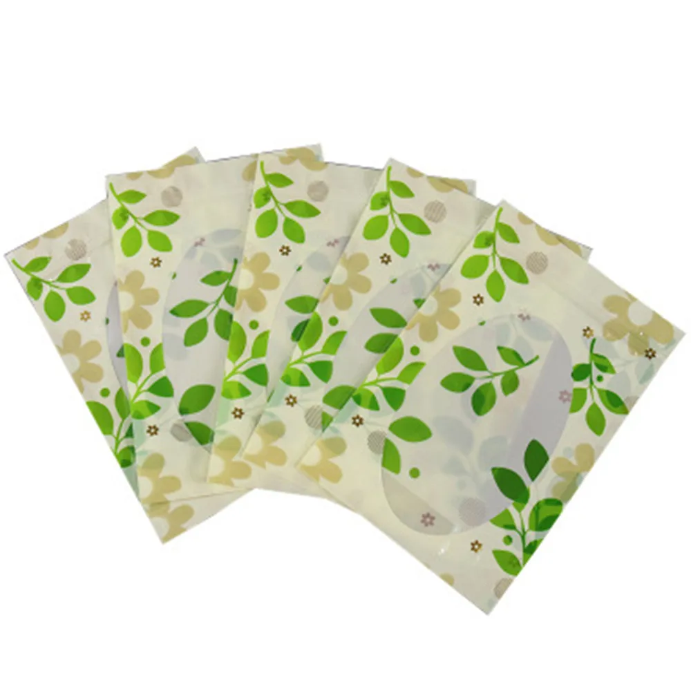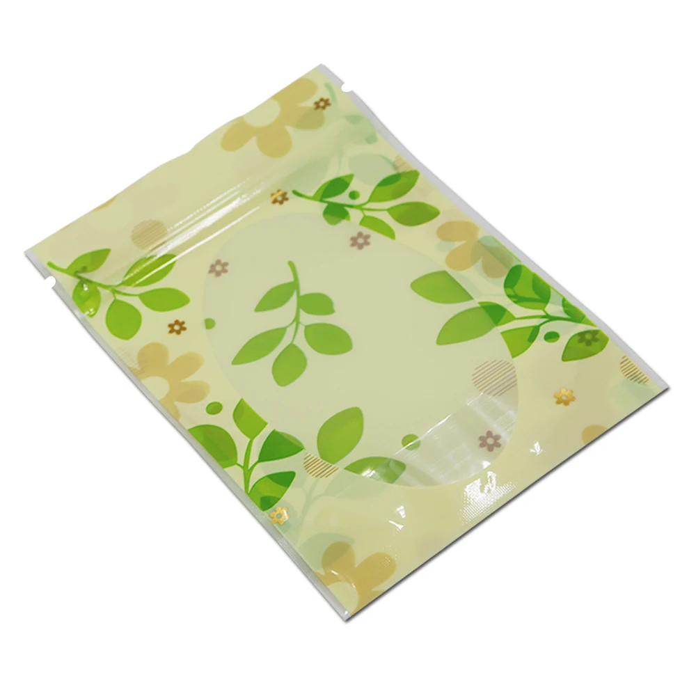 100 шт.лот, пакеты с застежкой-молнией и рисунком зеленых листьев, с прозрачным окном, самозапечатывающиеся, пластиковые пакеты дой-Пак для еды, кофе