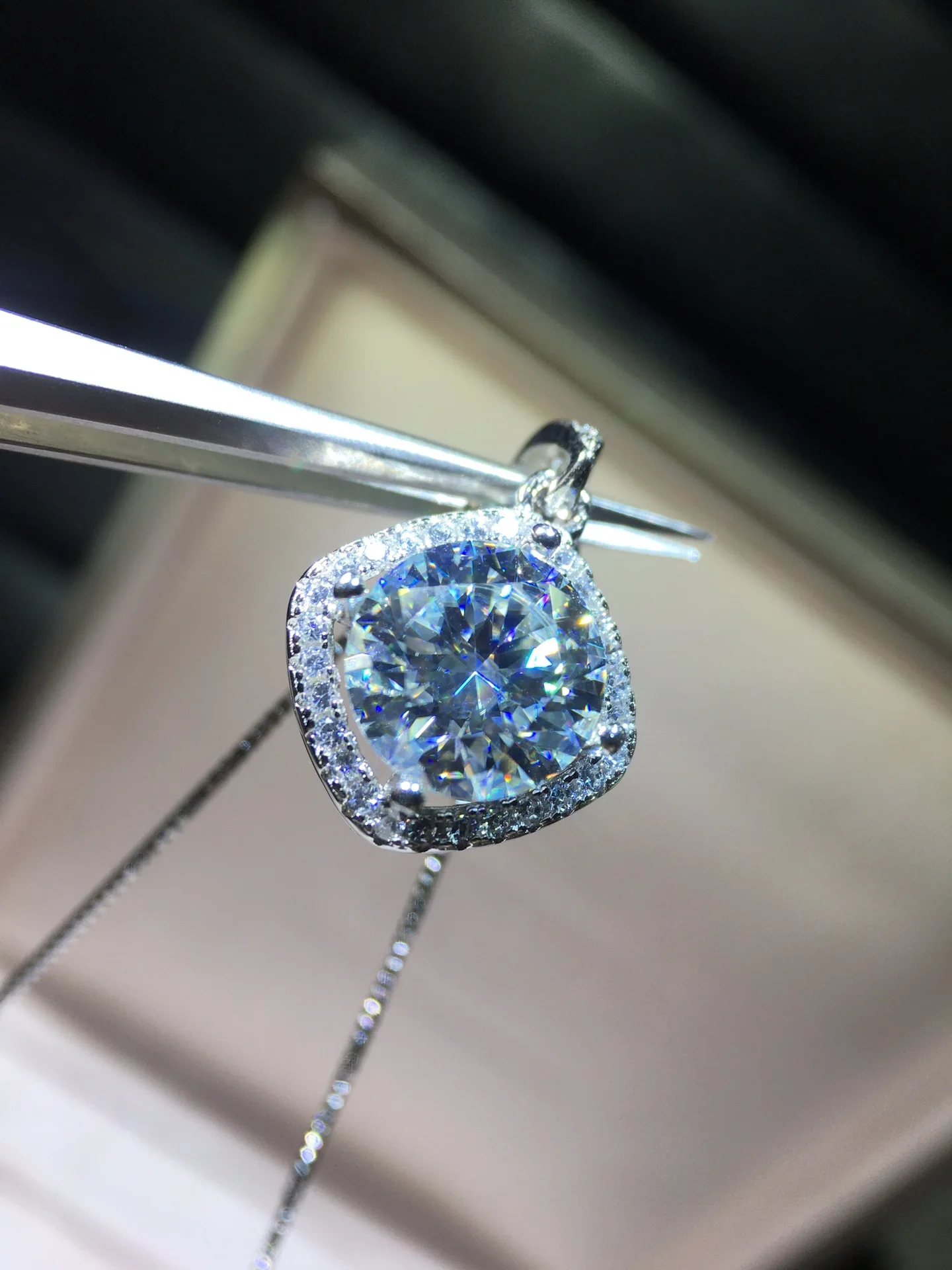 Inbeaut 925 серебро 2 ct D Цвет пройти Diamond тесты последние бриллиант квадратный кулон ожерелье отличный крой VVS1 Муассанит цепи