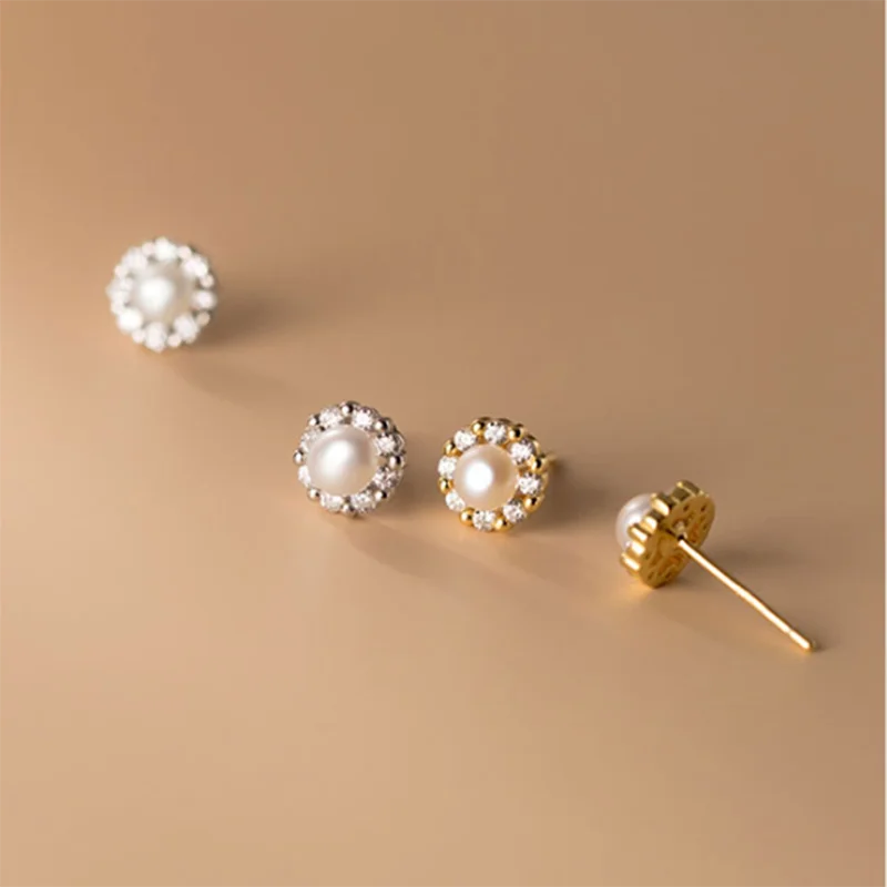 Серьги-гвоздики WANTME из настоящего серебра 925 пробы женские, Очаровательные Круглые серьги с жемчугом из циркония в Корейском стиле, модная свадебная и вечерняя бижутерия, 2021