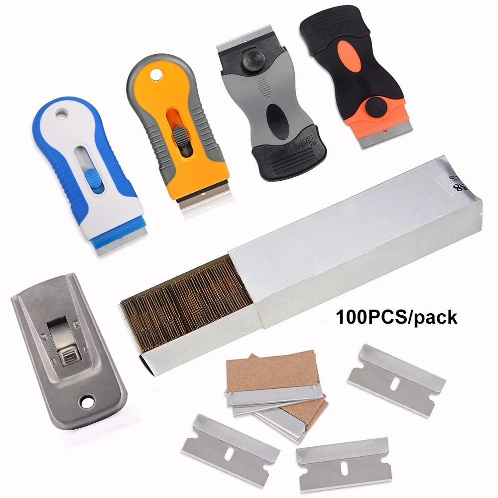 FOSHIO виниловый инструмент для очистки пыли бритвенный оконный скребок автомобильный тонировочный пленочный стикер для удаления чистого скребка 100 шт. лезвие из углеродистой стали