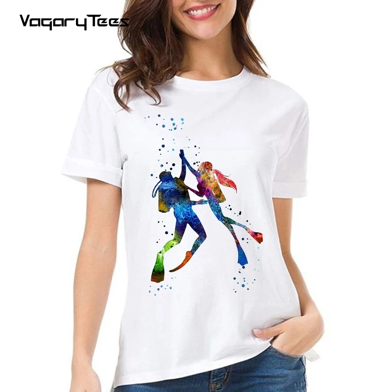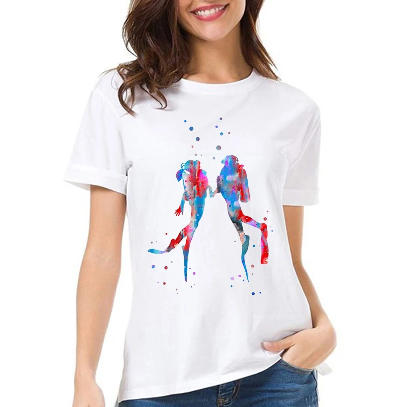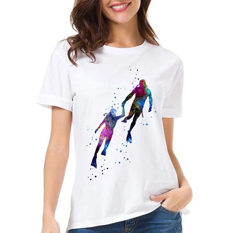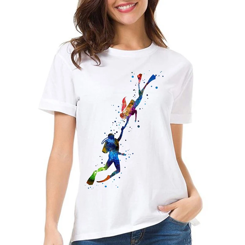 Футболка с принтом сердца для дайвинга, модные Забавные футболки с ...