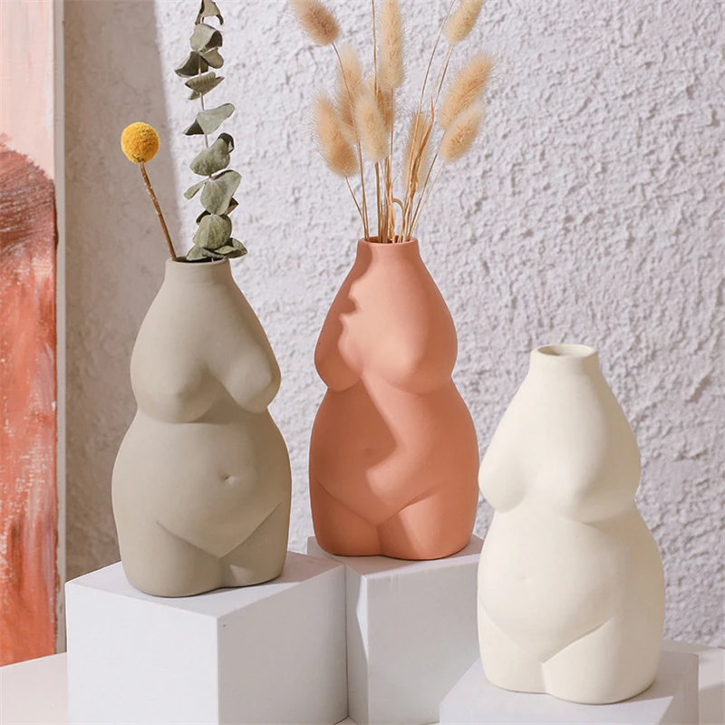 Керамическая ваза для тела, художественная Керамическая маленькая ваза-кашпо для сухоцветов, горшок из смолы, ваза-кашпо в скандинавском стиле, украшение для дома