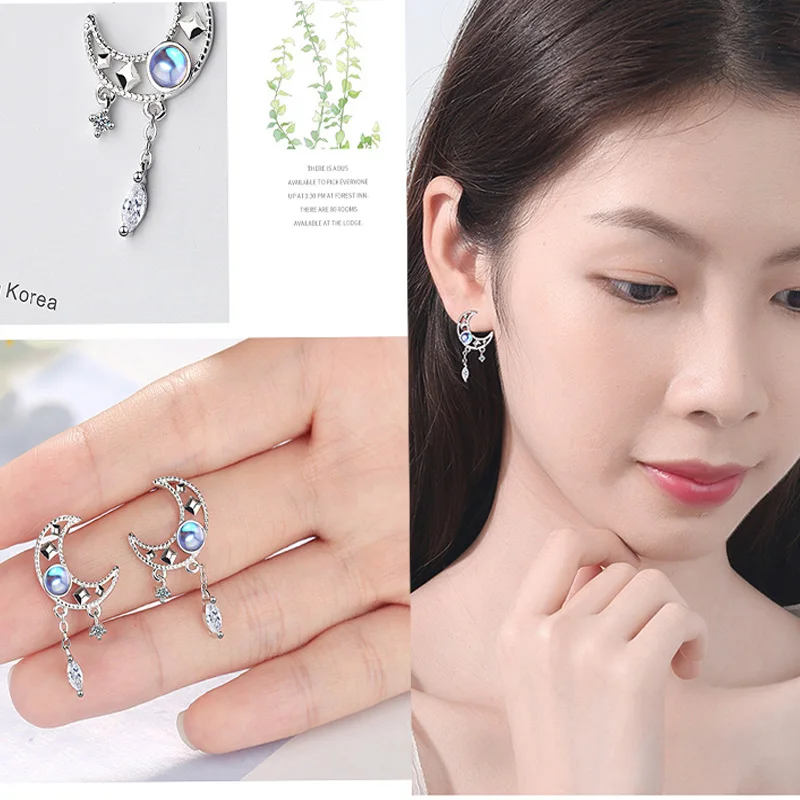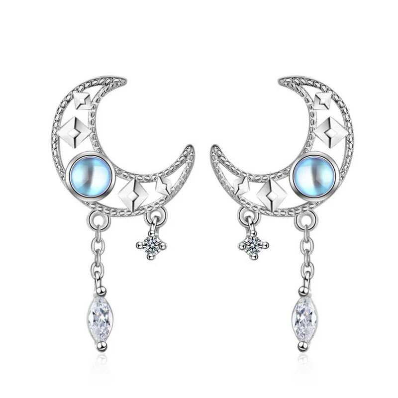 Женские серьги с лунным камнем, Серьги-кисточки в виде Луны из стер...