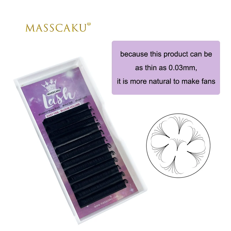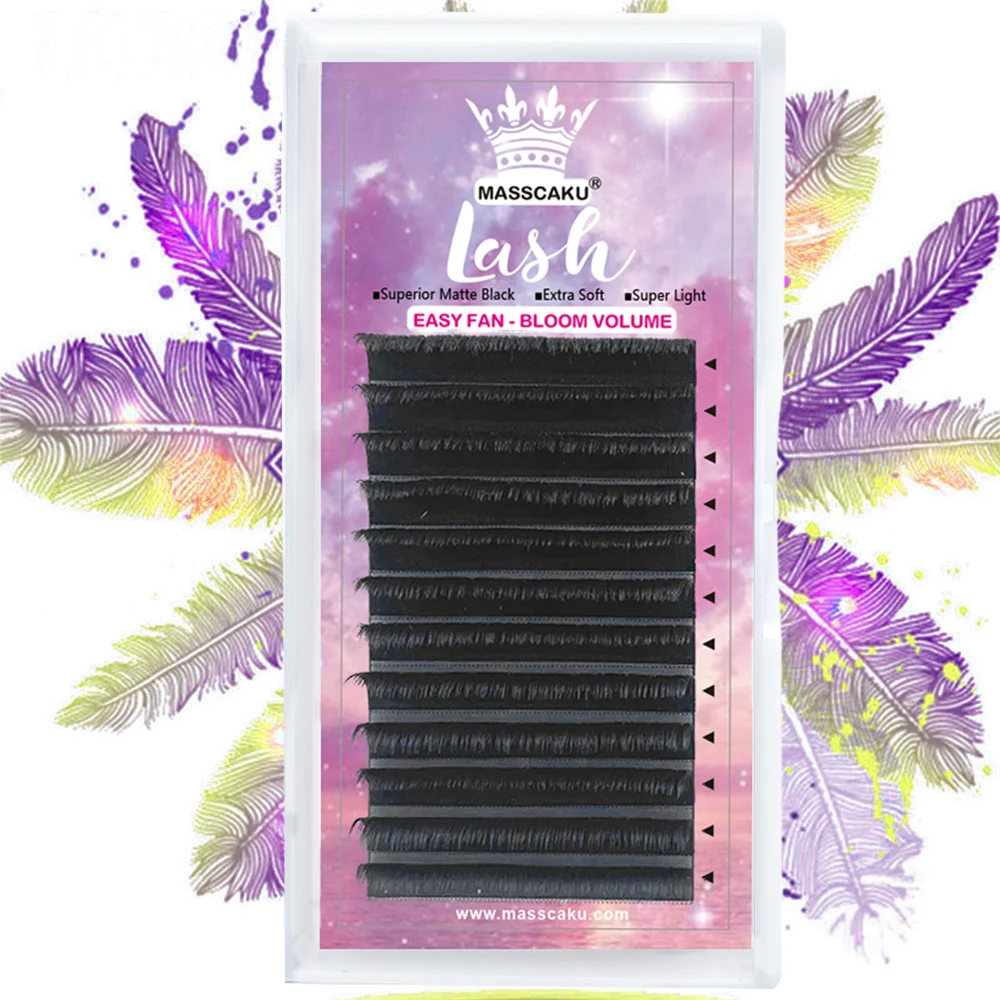 MASSCAKU 1 Second Easy Fan Lash Premade, объемные вентиляторы, авто растущие ресницы 0,05/0,07/0,10 мм 8-16 мм, долговечные для наращивания ресниц