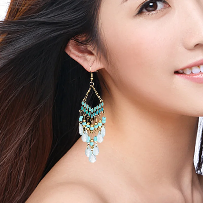 Серьги-подвески в форме веера женские, Классические висячие серьги в этническом стиле с красными кристаллами, Длинные свадебные серьги-кисточки в богемном стиле, летняя бижутерия