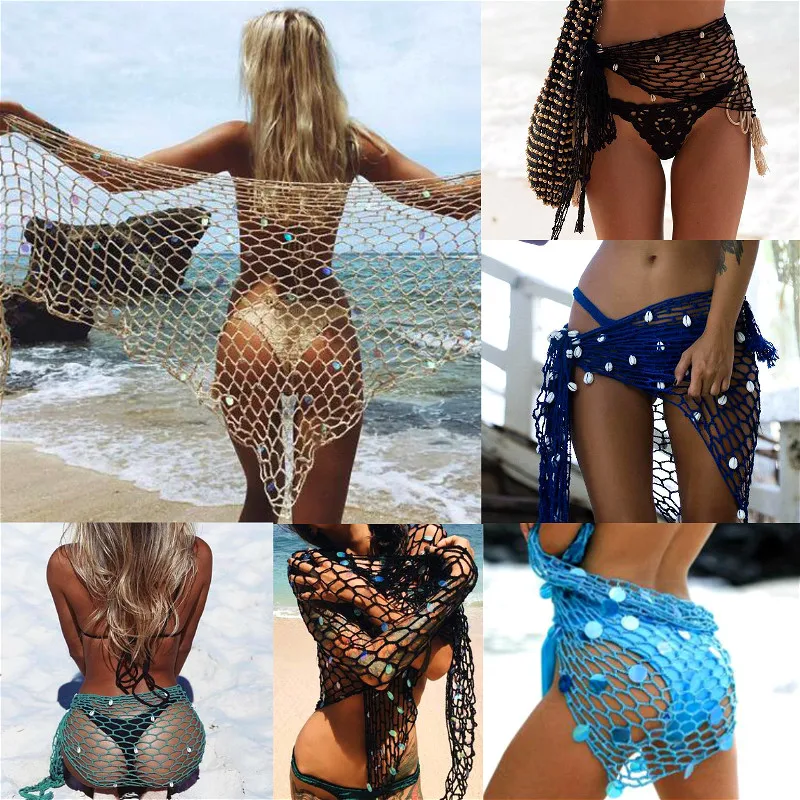 Женские накидки для бикини, ажурные сетчатые шали, пикантные пляжные юбки, туника парео, женская накидка для купания