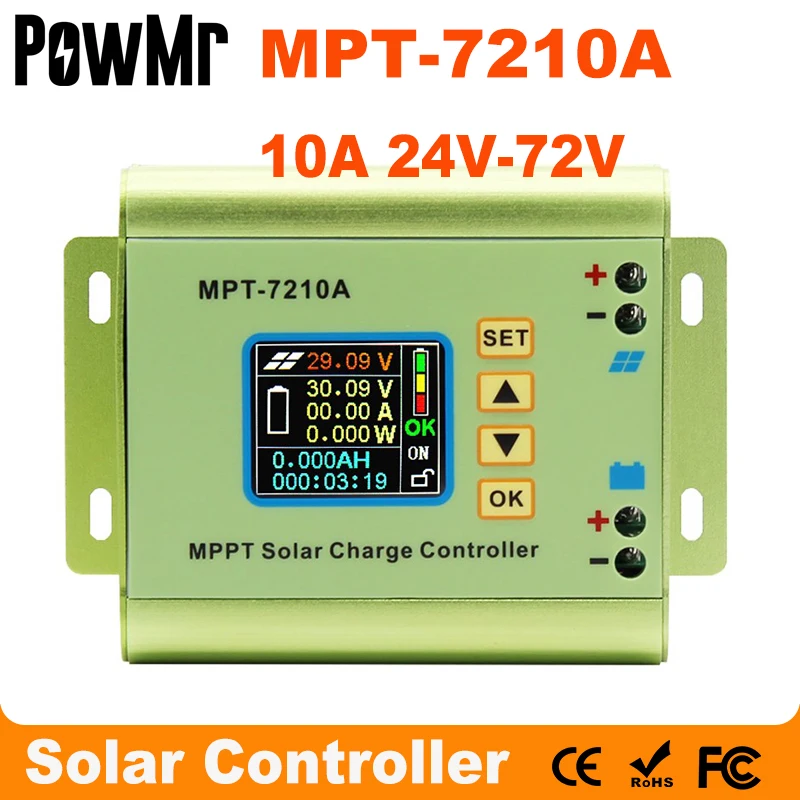 MPPT Солнечный контроллер заряда MPT-7210A MPPT 10A солнечная панель LCD алюминиевый сплав для батареи LiPo выход 600 Вт 24 в 36 в 48 в 60 в 72 вОсобенности:
