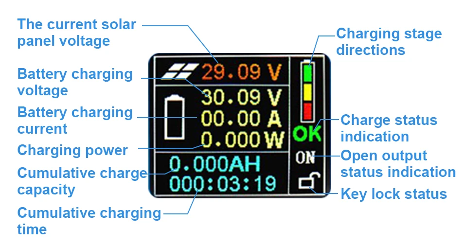 (5) Свойства модуля: точность отслеживания контроллера MPPT и ведущая в отрасли эффективность преобразования, автоматическая зарядка только управления, высокая эффективность Шаг-MPPT контроллер солнечной панели, предназначен для аккумуляторов и управления зарядкой литиевой батареи.