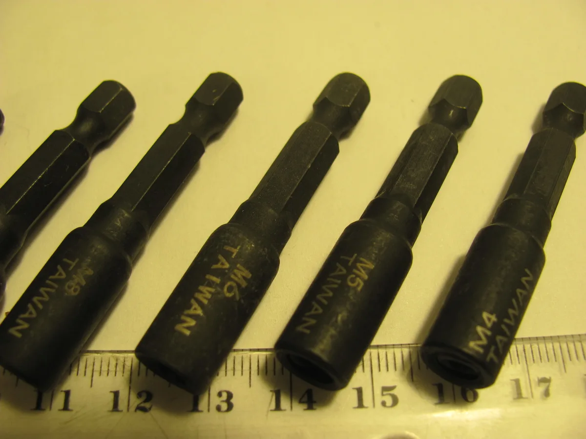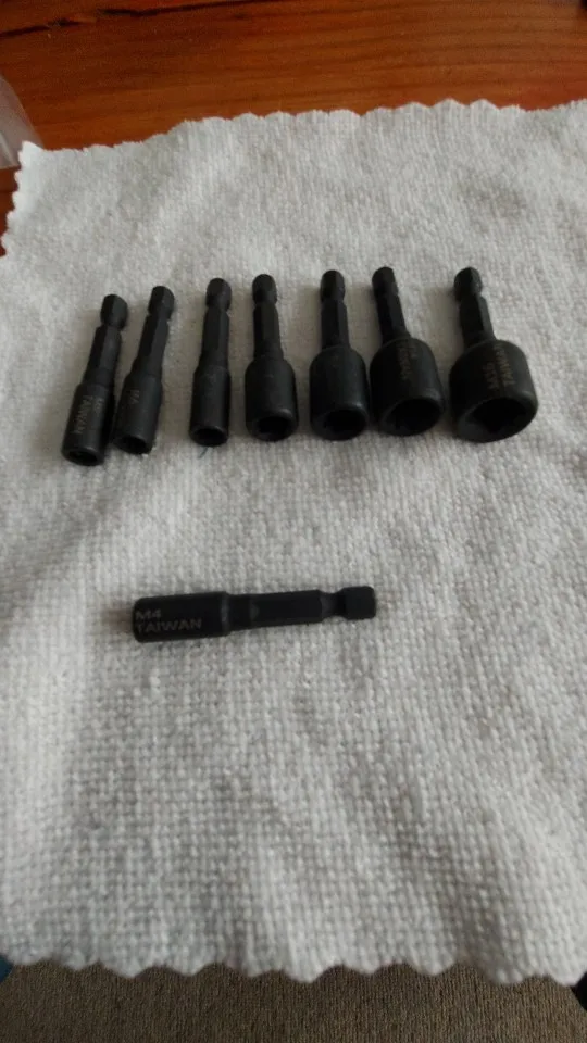 Среднее качество изготовления. Некоторые метчики входят туго, некоторые прямо болтаются. Пружинки, которые вставлены в квадратные гнезда для метчиков, их не держат и сами вываливаются. Шестигранники вставляются в шуруповерт хорошо. По размерам - обозначенные на них размеры не соответствует размерам метчиков, которые к ним у меня подошли. Типа мы вместо м3. Но весь ряд до м14 они покрывают. Стоят своих денег