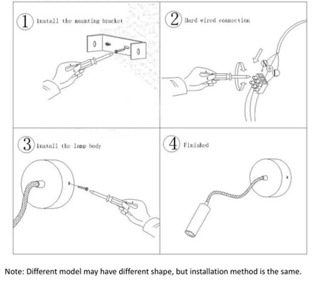 Материалы: алюминий Вход напряжение: AC85-265V 50/60Hz Светильник источник света: 3 Вт Вилка: США/ЕС/Великобритания (опционально) Цветовая температура: теплый Светильник 3000K/нейтральный светильник 4000K/белый светильник 6000K Способ крепления: настенный Режим управления: настенный выключатель Площадь освещения: 5 м ^ 2 до 10 м ^ 2 Размер: держатель лампы 31*57 мм Общая длина шланга: 8*300 мм основание 64*28 мм Общая длина шнура штепсельной вилки: 1,8 м Применение: гостиная, столовая, кабинет, спальня, ресторан, лобби, другие