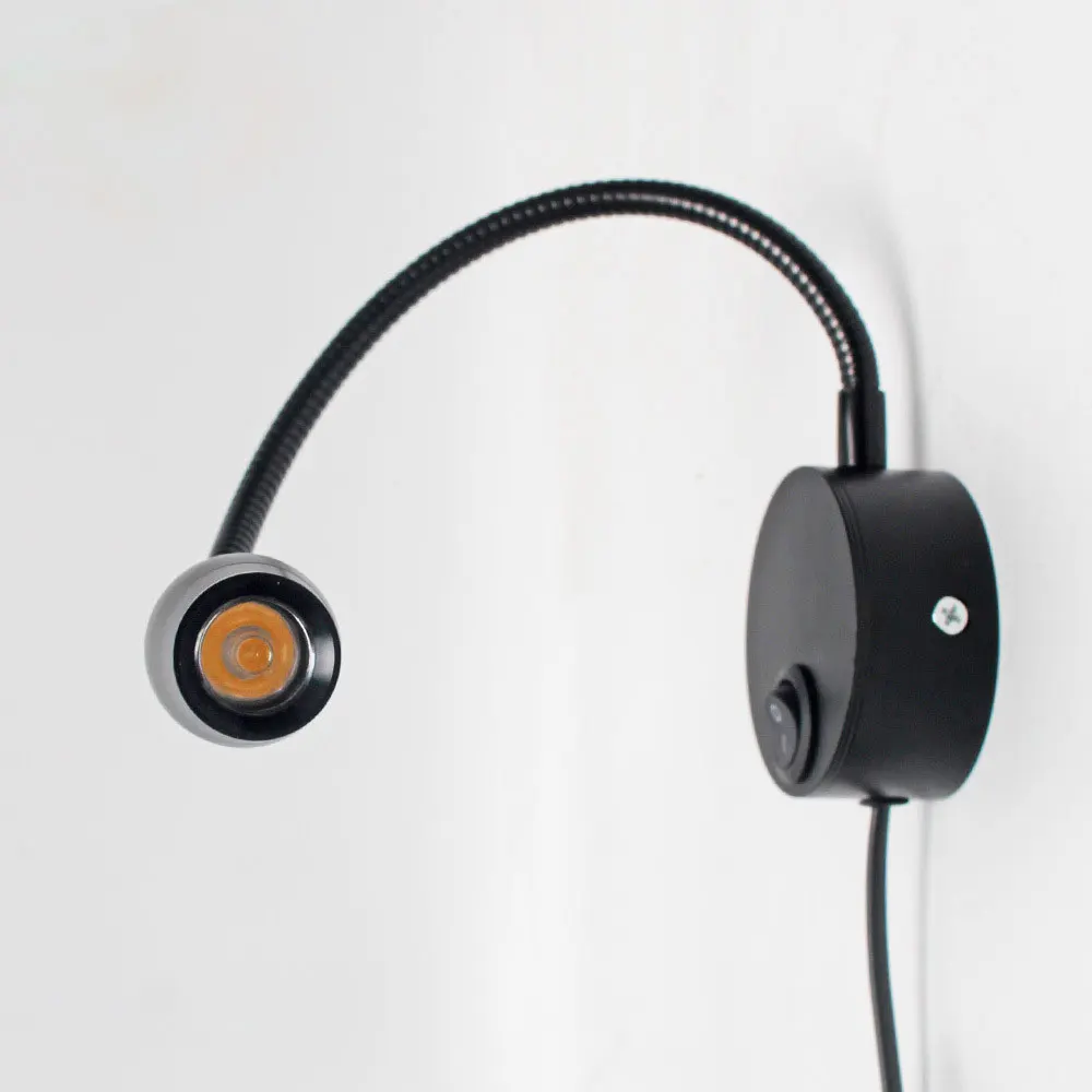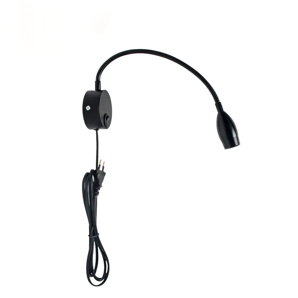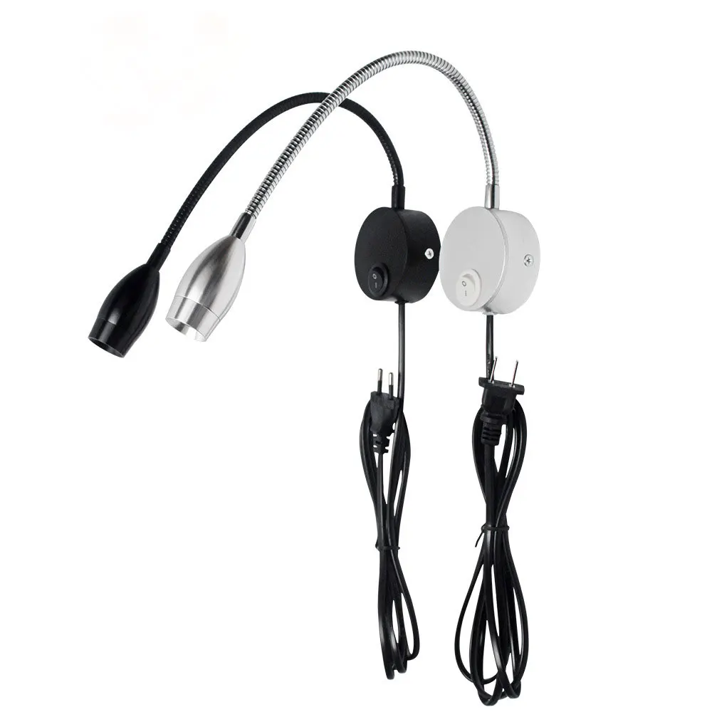 Светодиодный прикроватный книжный светильник с гибким шлангом, 3 Вт, США, ЕС, Великобритания, шнур, вилка, ночник, светильник для чтения, лампа для изучения, настенная лампа, светодиодный светильник