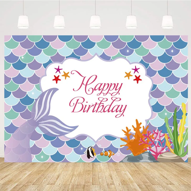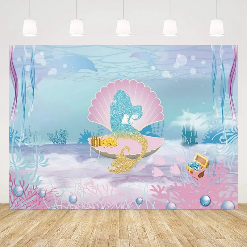 Фон для детской фотосъемки с изображением Русалочки, 180x110 см, для дня рождения, вечевечерние, украшения детский душ