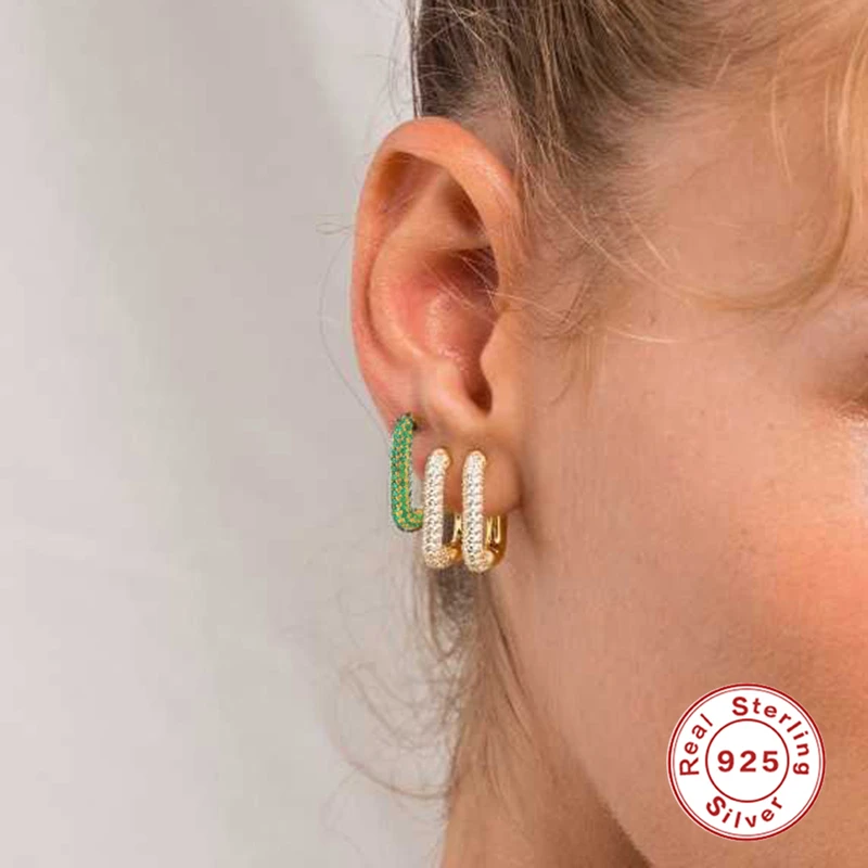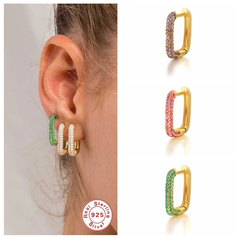 Серьги из стерлингового серебра S925 с микро инкрустированным цирконием модные европейские и американские Геометрические Квадратные Цветные большой круг обруч серьги