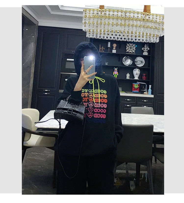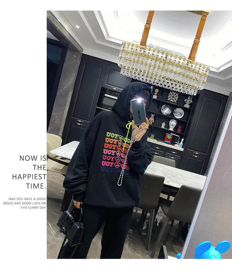 Толстовка унисекс с вышивкой и надписью, свитшот большого размера d в стиле Харадзюку, повседневный пуловер с длинным рукавом, Осень-зима