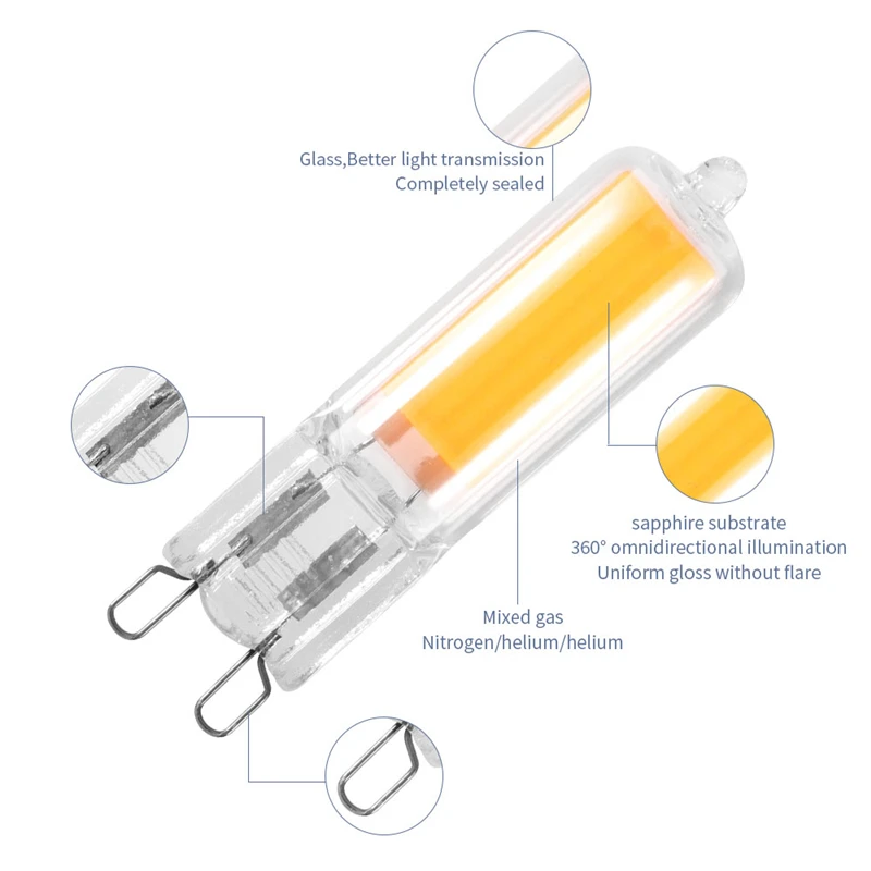 Светодиодная лампа COB G9, 6 Вт, 9 Вт, 12 Вт, 110 В, 220 В, стеклян...