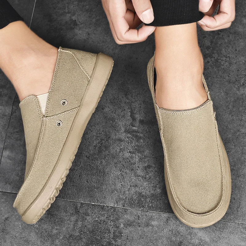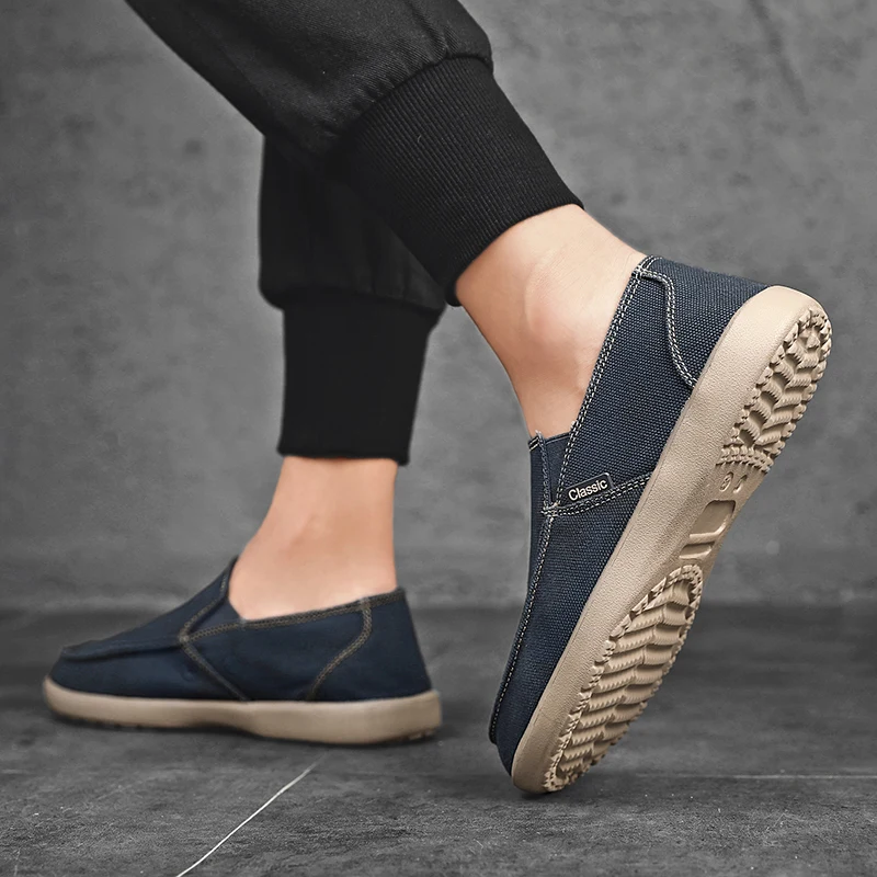 Мужские парусиновые туфли без застежек, из денима, на плоской вулканизированной подошве