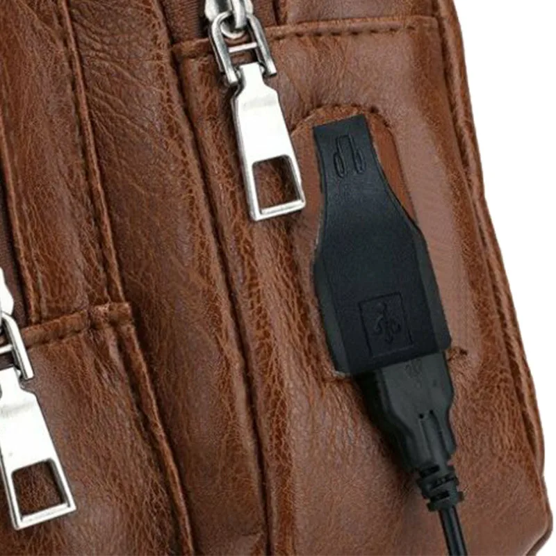 Мужская винтажная нагрудная сумка через плечо с USB-портом для заря...