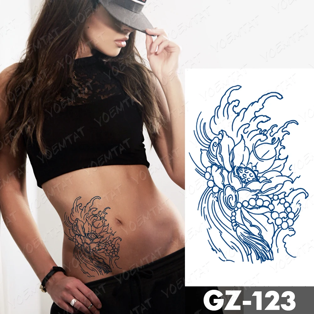 Водостойкие временные тату-наклейки Juice стойкие, тату-наклейки с лотосом и волнами, женские чернила, боди-арт на бедра, искусственная татуировка для мужчин наклейки переводные тату татуировки временные стикеры мужски