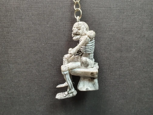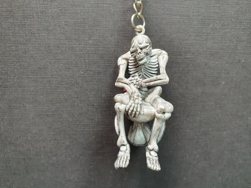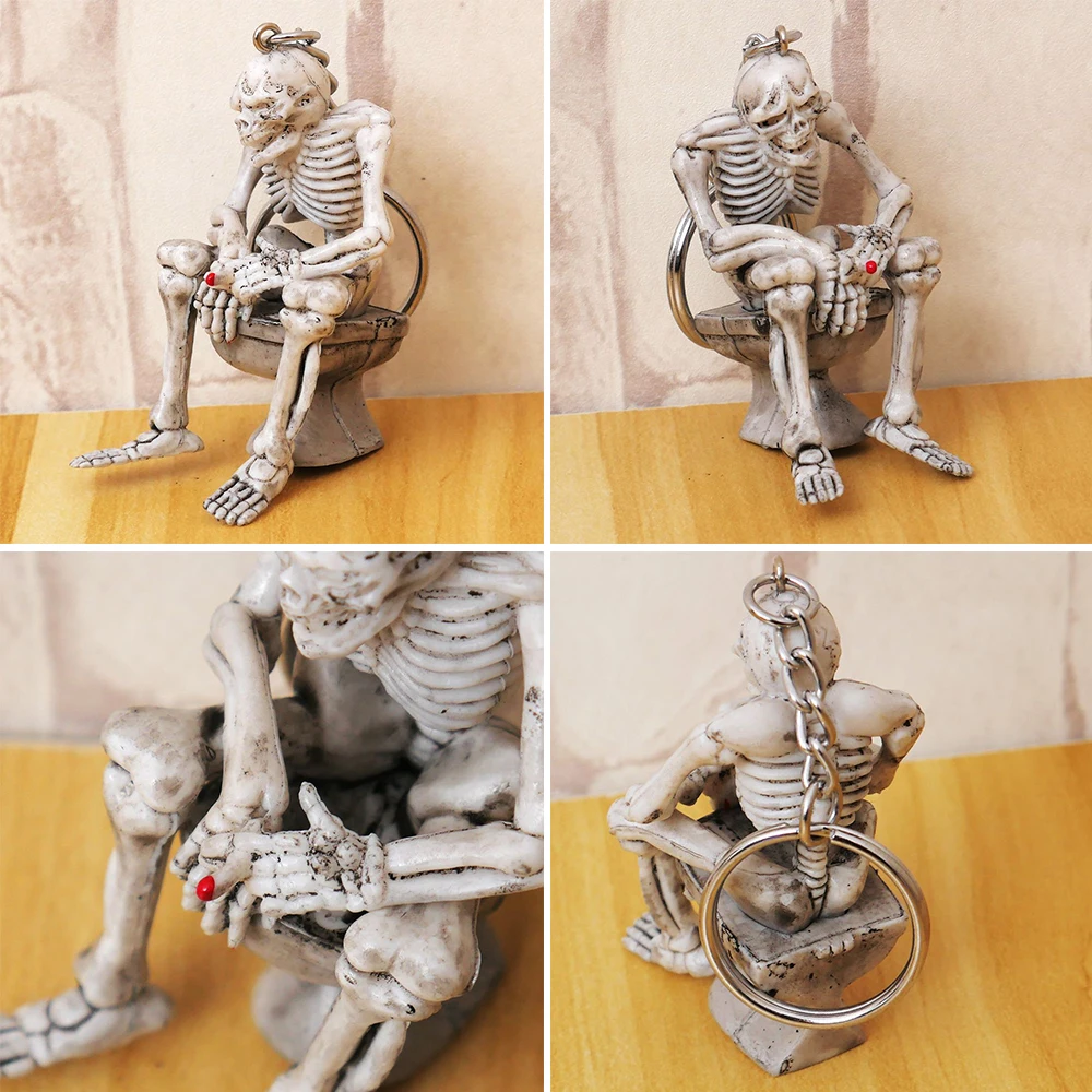 Этот серый брелок украшен черепом, унитазом и резиной, что является модным и креативным подарком для ваших друзей.