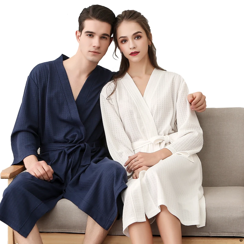 Свадебный парный халат унисекс для ванной, гостиничный Вафельный Халат с длинным рукавом, Сексуальный банный халат с поясом для влюбленных, Мужская Ночная рубашка, домашняя одежда для сна