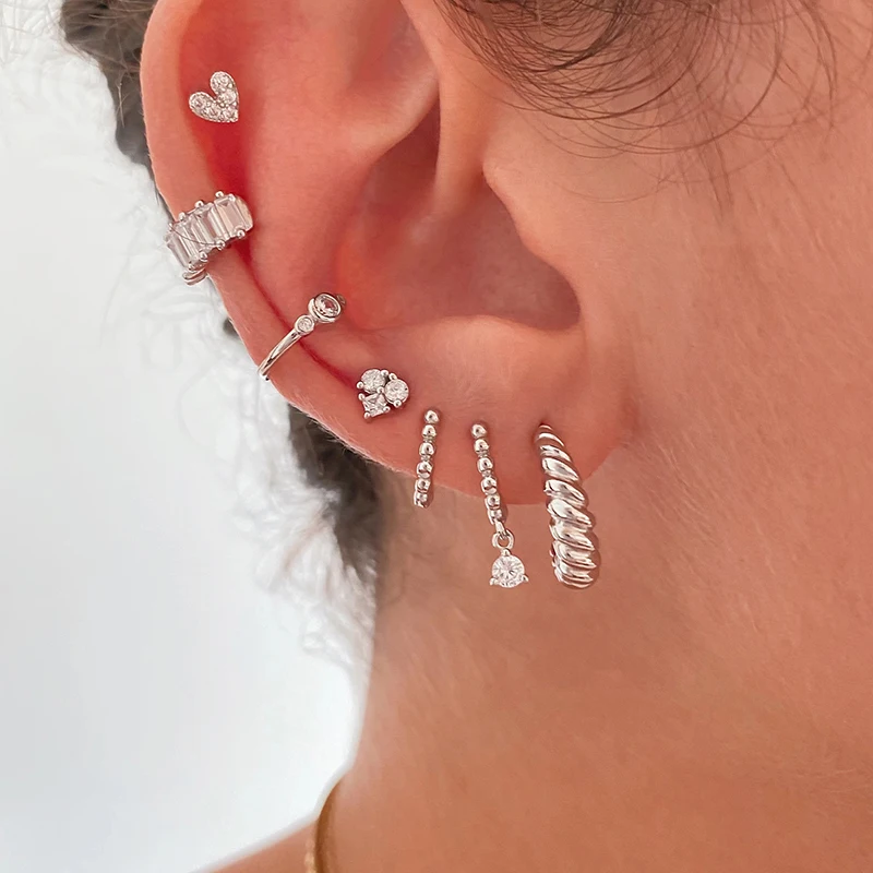 Женские серьги-Клипсы из серебра 100% пробы с имитацией пирсинга