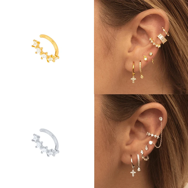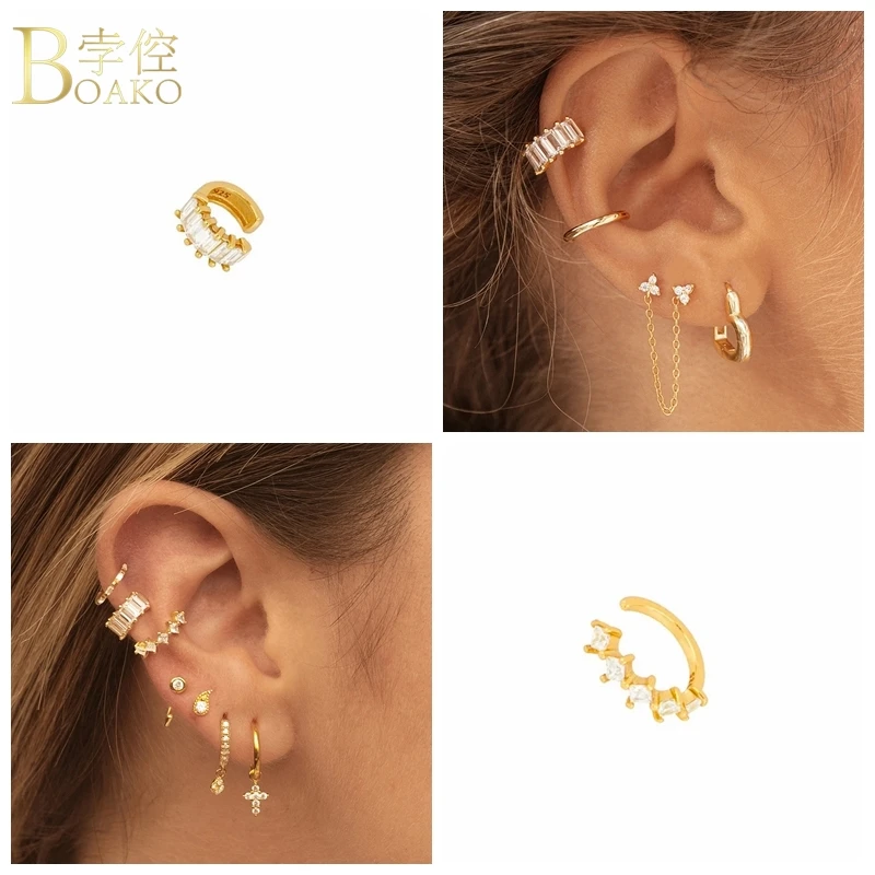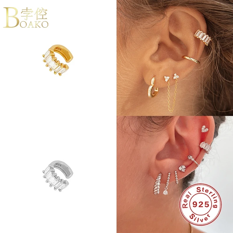 BOAKO 1 шт. серьги-клипсы с кристаллами 925 стерлингового серебра серьги для женщин Pendiente Ohrringe манжеты колошения Роскошные модные ювелирные изделия