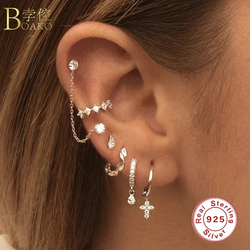 BOAKO Крюк Пирсинг Серьги 925 пробы Серебряные серьги для Для женщи...