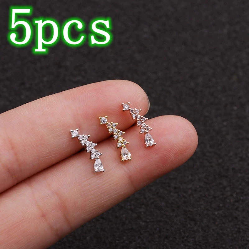 Серьги-гвоздики золотые для ушей, набор для пирсинга на хрящевой основе раковины, рока, Козелка, губы, носовой перегородки, 5 шт., ювелирные изделия для тела H6
