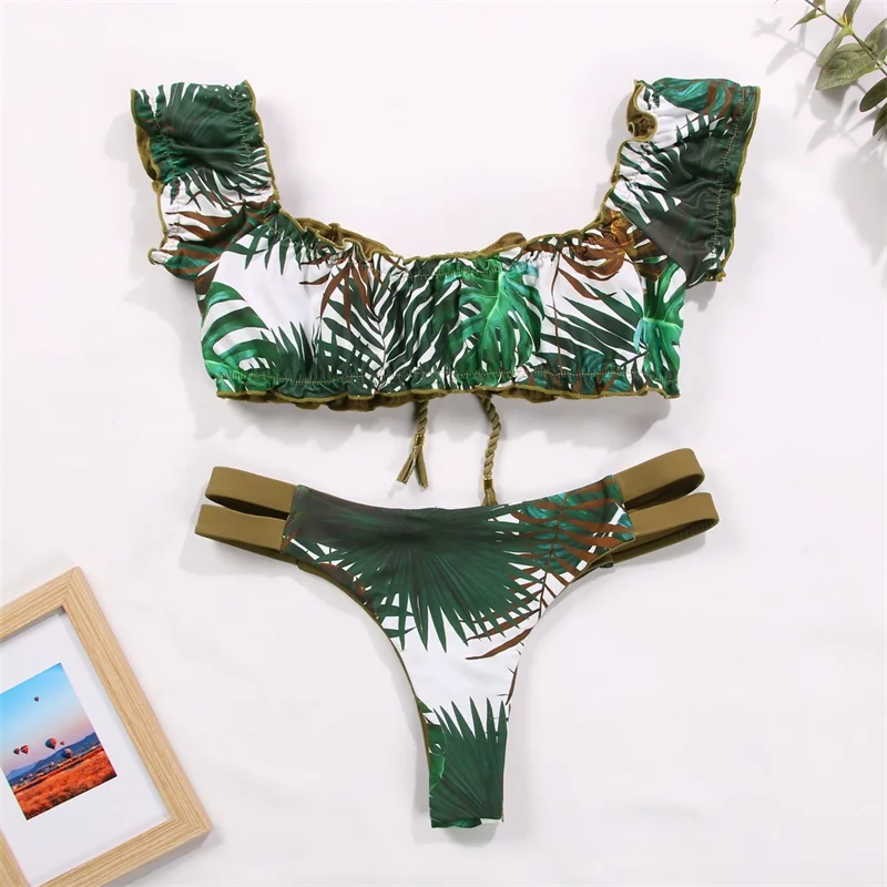 Купальник-бикини женский с оборками, пикантный бандажный купальник с чашками пуш-ап, бразильский микро-купальник, лето