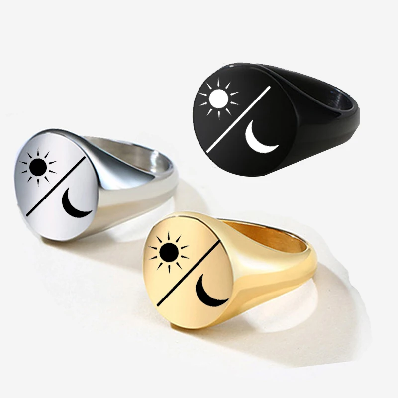 Sun Moon с гравировкой для мужчин и женщин из нержавеющей стали, розово-перстень персонализированный Золотой укладка модные ко Дню Святого Валентина, ювелирное изделие, подарок