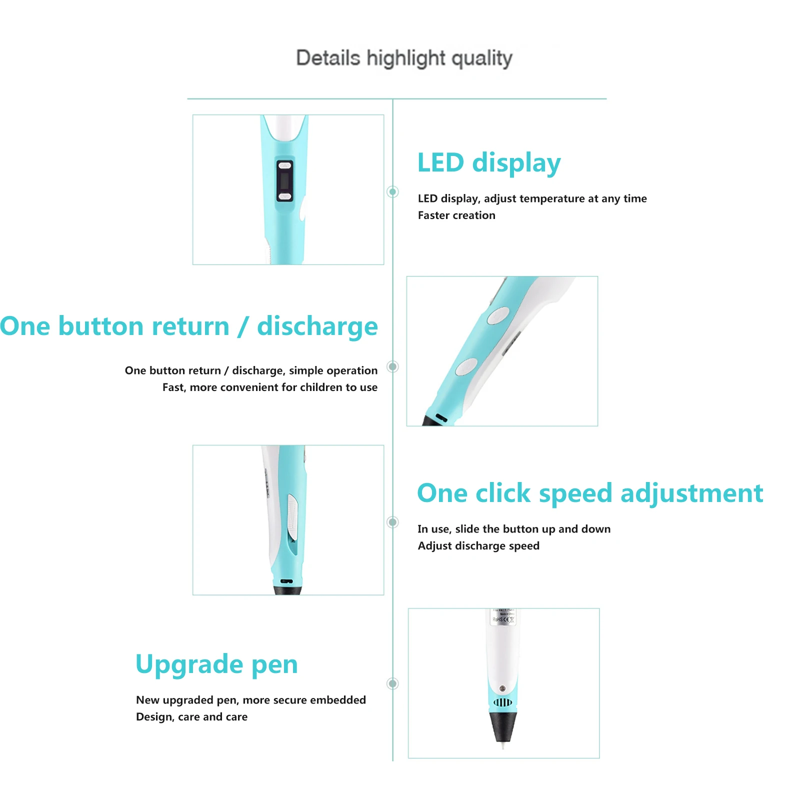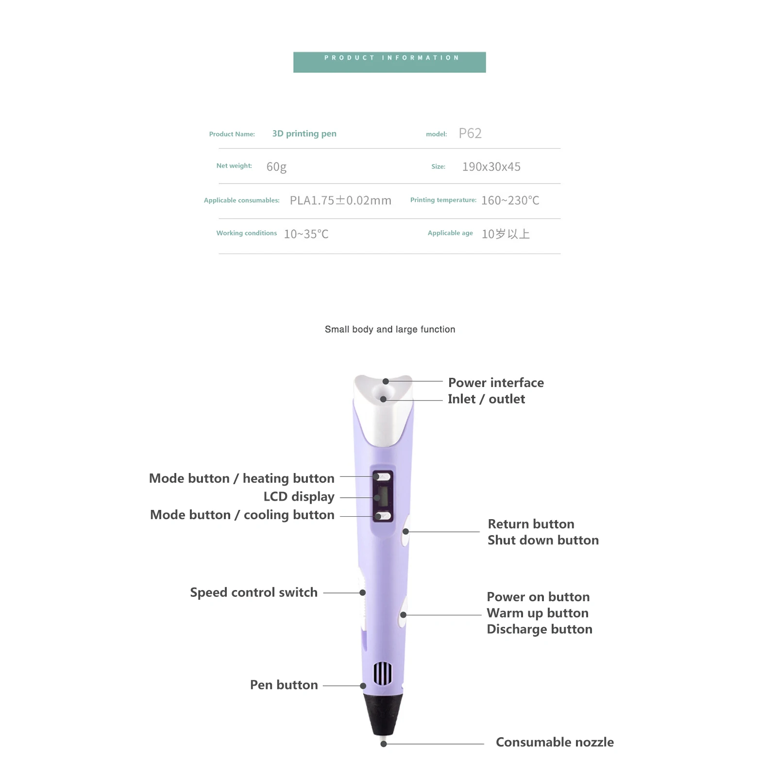 Ручка для 3d-печати светодиодный ным дисплеем, ручка для рисования сделай сам, игрушка в подарок для детей и взрослых, пла-нить, умный 3D-принтер для граффити, кисть