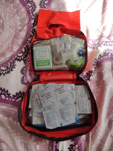 Наименование: аптечка первой помощиХарактеристики:Сумка для первой помощиМатериал: нейлон + тканьНейлоновый материал, портативный, прочный.Полностью открытая молния для удобного выбора и размещения предметов, легко носить с собой и хранить.Ярко-красная сумка и яркий крест символ делает комплект легко найти в экстренных случаях чехол.Идеально подходит для кемпинга, пеших прогулок, путешествий, занятий спортом на открытом воздухе, семейных и непредвиденных ситуаций.