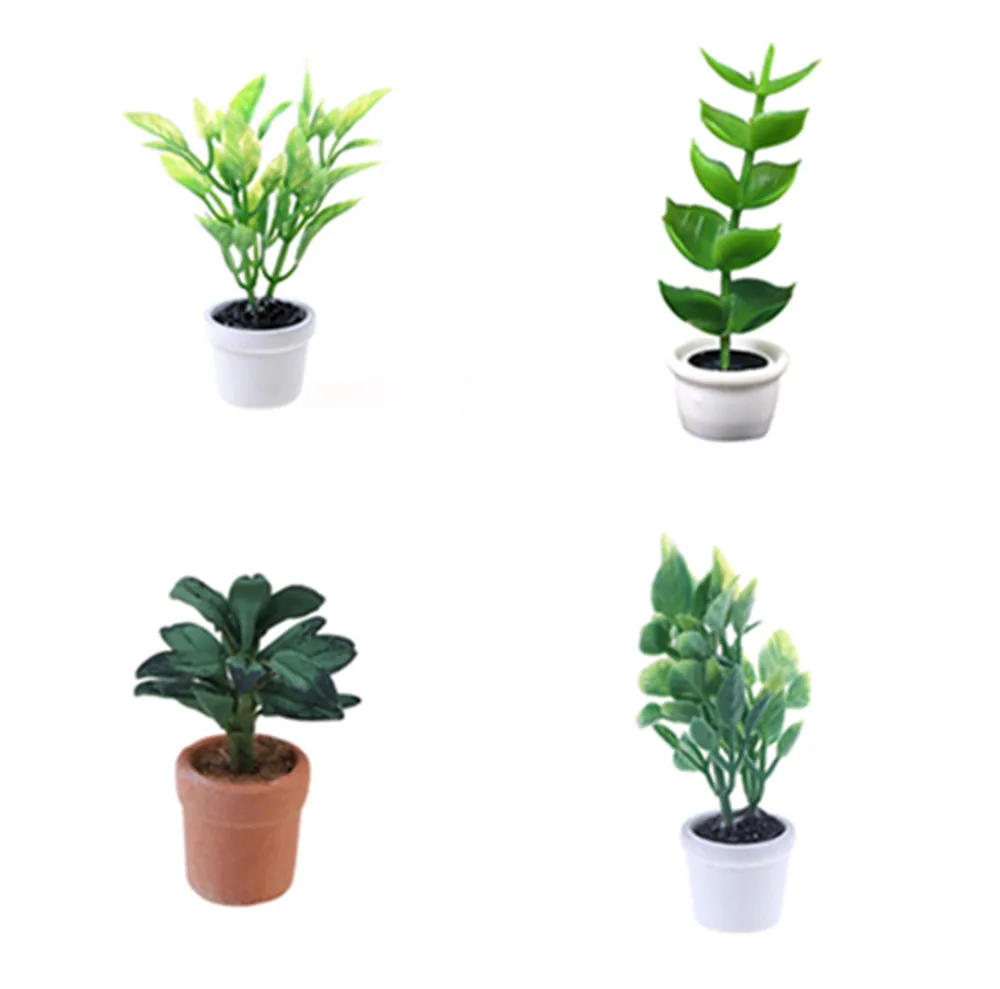Искусственные растения в горшке, зеленое дерево в горшке для кукольного домика 1:12, миниатюрное зеленое растение в горшке, мебель для кукольного домика, Декор для дома