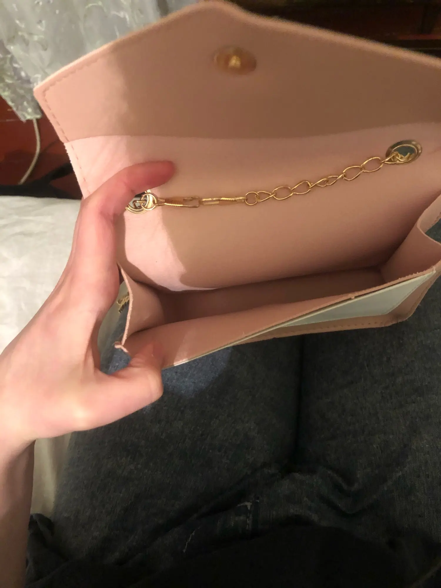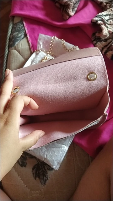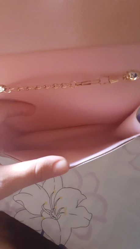 Pensé que el material sería un poco más resistente, y la cartera no presenta ningún tipo de forro para proteger el bolso, pero es preciosa, precisa para llevar solo lo justo