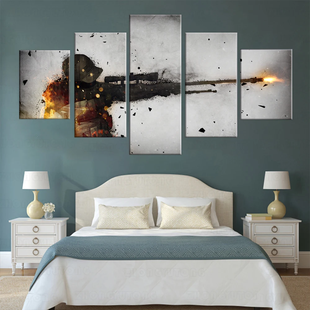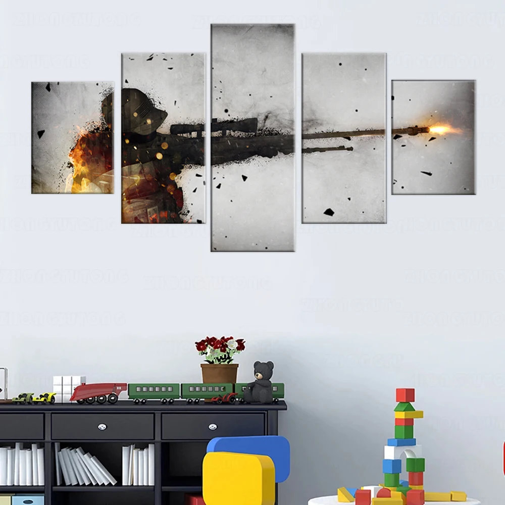 5 шт. настенное искусство FPS игра плакат CSGO снайперские картины масляная живопись на холсте для гостиной домашний Декор Рамка