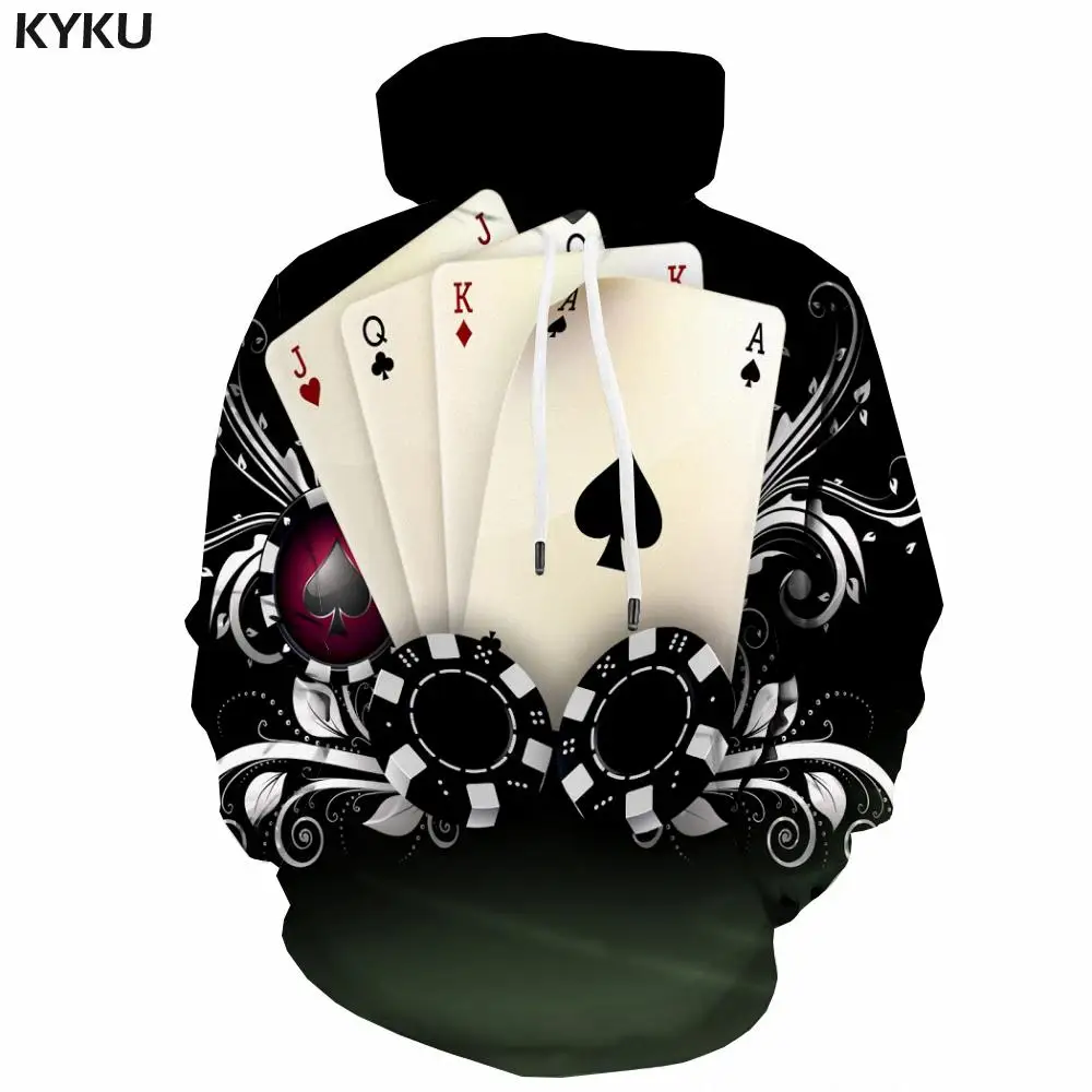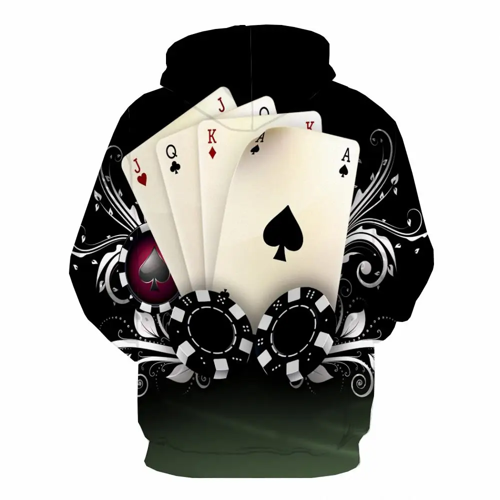 Толстовка мужская черная с 3D-принтом, свитшот с рисунком игральных карт, худи в стиле унисекс, хип-хоп, осень