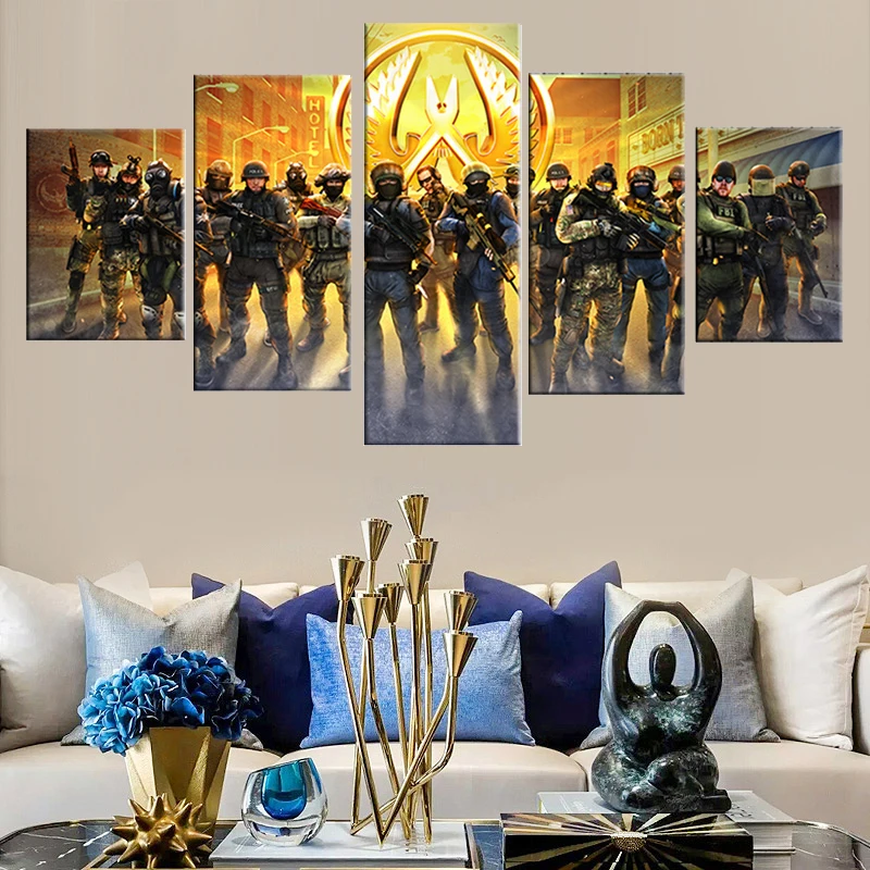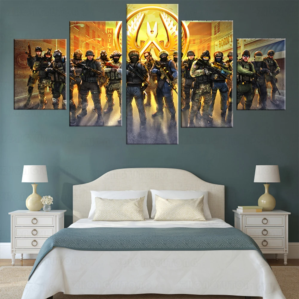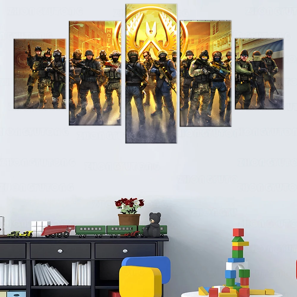 Постер с изображением игры CSGO, 5 шт., настенная живопись на холсте для гостиной, настенное художественное украшение с рамкой