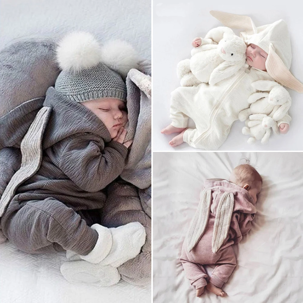 Комбинезон с кроличьими ушками для новорожденных мальчиков и девочек
