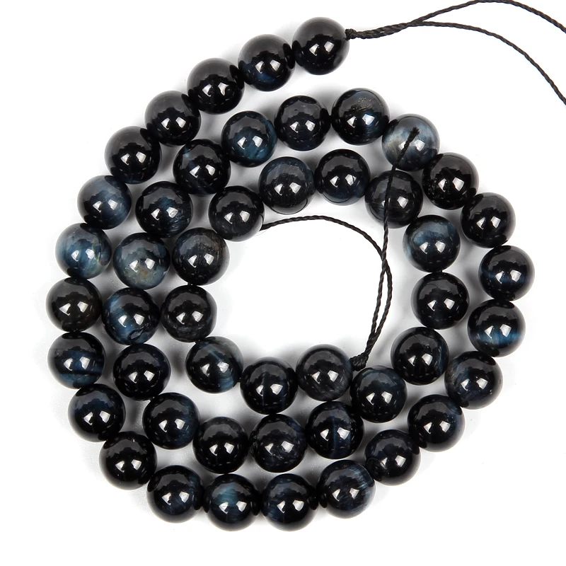 Круглые бусины из натурального камня Тигрового Глаза для изготовлен...