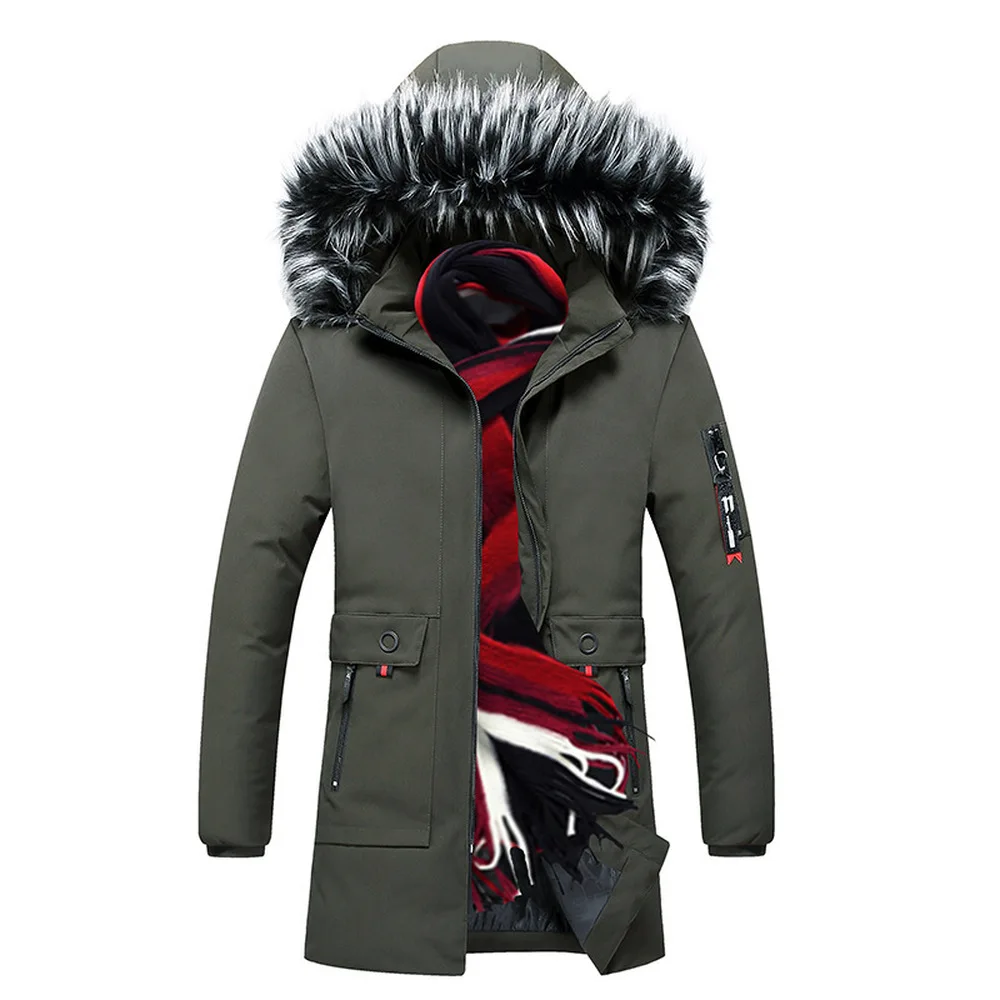 Куртка мужская зимняя со съемным капюшоном, с меховой подкладкой, теплая, мужское длинное пальто