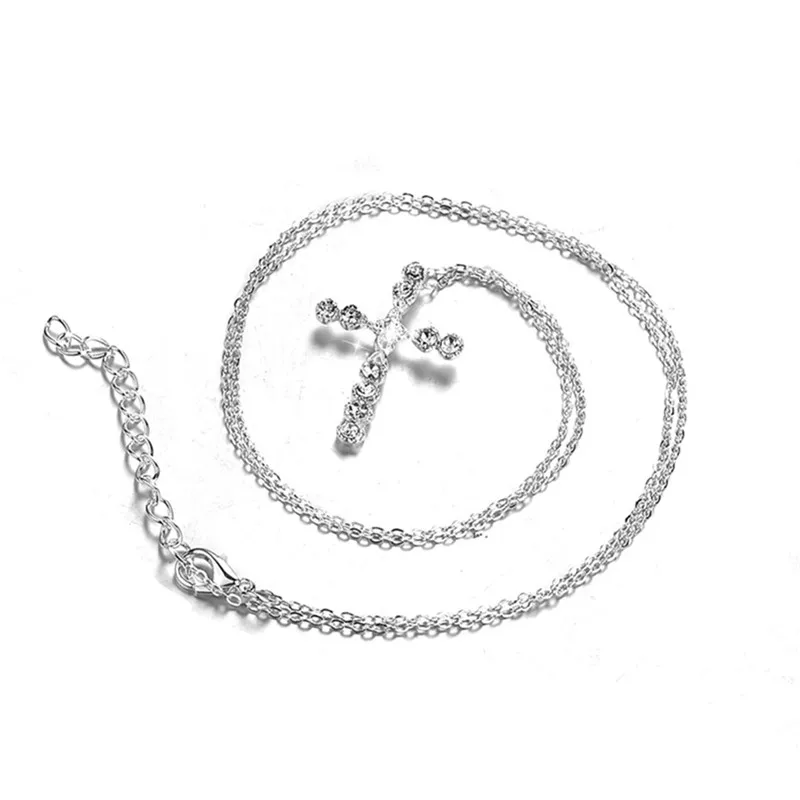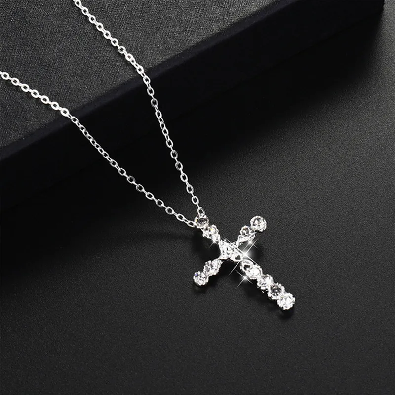 Модные женские крестовые подвески, Прямая поставка, серебряный цвет, Кристальный крест, кулон, ожерелье, ювелирные изделия для мужчин/женщин, оптовая продажа