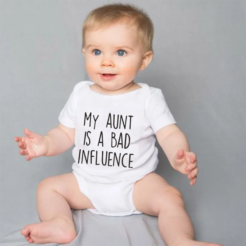 2021 моя тетя плохо влияет на детское боди, милые комбинезоны с коротким рукавом для новорожденных мальчиков и девочек, боди, детская одежда