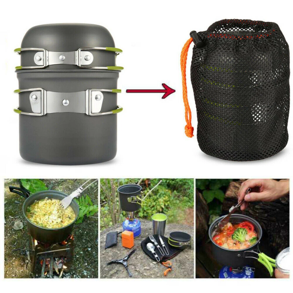 6. Наслаждайтесь готовкой в любом месте: этот удивительный набор посуды предназначен для тех, кто любит кемпинг на открытом воздухе с семьей и друзьями! Он супер-портативный, что делает его гораздо более удобным для кемпинга, пеших прогулок, альпинизма, пикника и других видов активного отдыха!