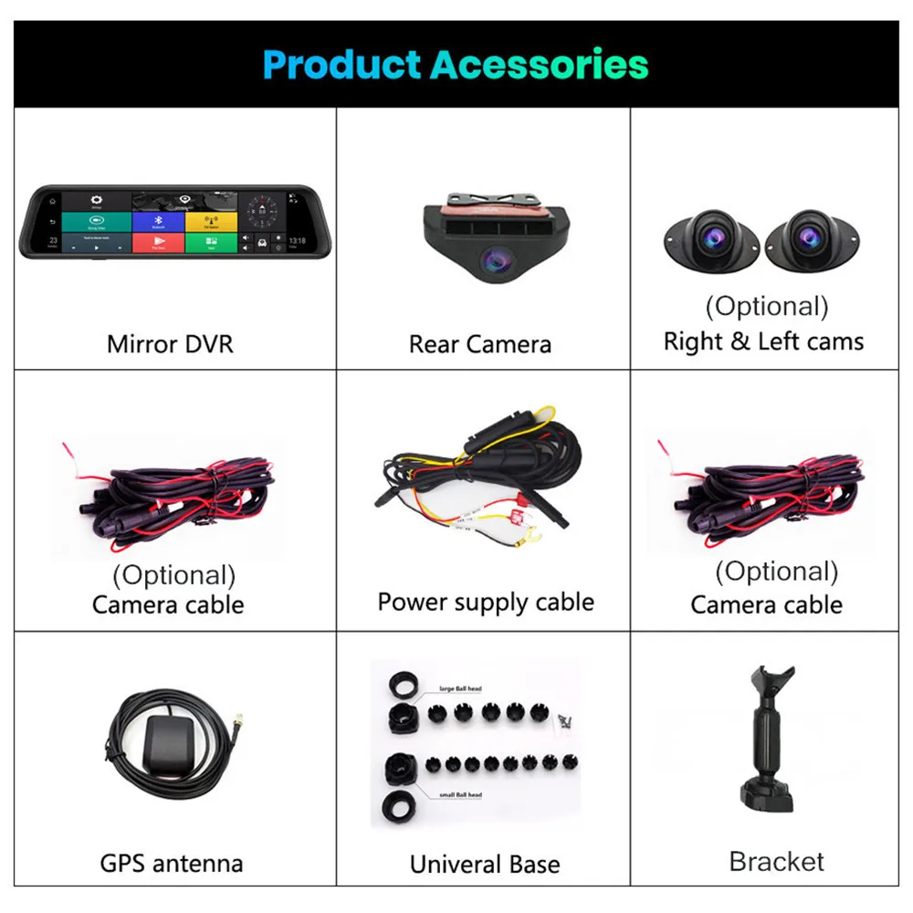 Новейший Интеллектуальный центральный контроль в 2021 годуЭто не только диктофон, но и начало жизни умного автомобиля. Как телефон, планшет, телевизор, компьютер, MP3 в машине.Умные автомобильные зеркала заднего вида так же просты в использовании, как и мобильные телефоны. Всегда обращайте внимание на безопасность вождения и записи вождения, а также Защищайте Вас и Вашу семью во время каждой поездки.Память 4 Гб + ПЗУ 32 ГБ Android 8,1 умный Автомобильный видеорегистратор зеркало заднего вида 12-дюймовая сенсорная камера 4G ADAS видеорегистратор GPS навигация Wifi автоматический видеорегистраторОсновные характеристики:> Плавное управление: MTK6735 1,3 ГГц Cortex-A53,GPU Mali-T720MP3,450 МГц, 22,9 ГГц> Поставляется с 4-канальным объективом камеры для безопасной парковки. Одновременная запись передней и задней камер. Правая и левая камера для слепых зон для отображения изображения для безопасной парковки.> Это Все зеркальные IPS-экраны 12 дюймов.> Тройной широкий вид сзади с помощью технологии потокового видео.> 4G модуль для SIM-карты (Интернет) + Wi-Fi модуль роутера = серфинг быстрее> Автомобильное мобильное приложение + Интернет-серфинг = удаленный монитор> Усовершенствованные системы сигнализации вождения (LDWS/ FCWS/FVMA).Полезные советы:-- Это устройство может работать только при подключении к нашему оригинальному кабелю питания, пожалуйста, не используйте его дома с собственным источником питания, иначе он сгорит ваш Автомобильный видеорегистратор.-- Если у вас есть особые требования к кронштейну dvr, сообщите нам тип вашего автомобиля и какой кронштейн вы хотите. В противном случае мы отправим вам кронштейн 1 # случайным образом. Спасибо.-- Перед заказом, пожалуйста, проверьте, есть ли у вашей локальной SIM-карты 4G Диапазоны (4G) LTE:FDD,2100(B1)/1800(B3)/850(B5); (3G) WCDMA: 2100(B1); (2G) GSM: 900(B8)/1800(B3) . В противном случае функция 4G не работает.-- Это устройство не поддерживает аппаратный антирадар, но вы можете установить антирадар (например. «Антирадар стрелка» android приложения из google play) в этот Автомобильный видеорегистратор для использования.-В этом устройстве используется аналоговая сигнальная задняя камера, а не цифровая задняя камера. Поэтому он не работает с нашей цифровой задней камерой ночного видения HD.-В этом устройстве используется SIM-карта, а не micro SIM-карта.Специальная установкаСо специальной установкой кронштейна, без привязки и более прочной.Стандарпосылка включает:1 х Автомобильный видеорегистратор3 x задняя камера1 задний кабель1 Антенна GPS1 x Кабель Питания1 х Универсальное основание1 карта TF (опционально)