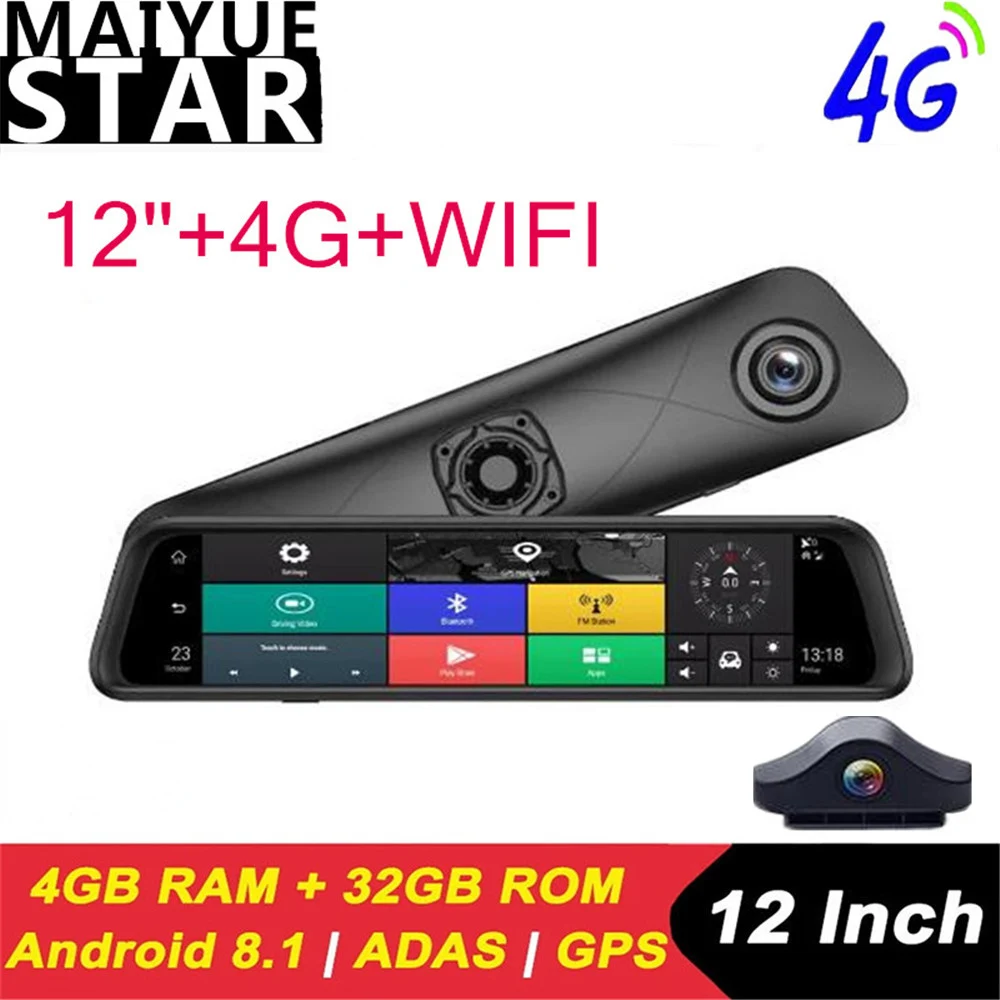Видеорегистратор-зеркало заднего вида, 12 дюймов, GPS, 4G, Android, 8.1, 4 + 32 ГБ, умный Автомобильный видеорегистратор, ADAS, Wi-Fi, 2021