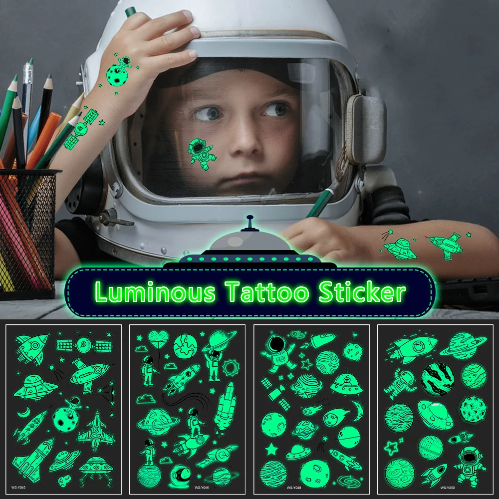 1 шт. светящиеся наклейки для татуировок для Детей Космический мультипликационный временный ребенок светящаяся паста на лице рука ноги тело искусство поддельные татуировки наклейки