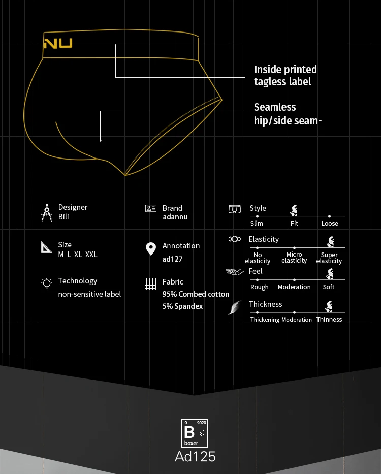 Мужские трусы брифы из хлопка, темно-синие дышащие трусы слипы с U-...