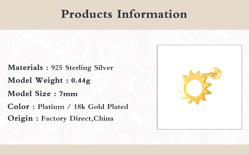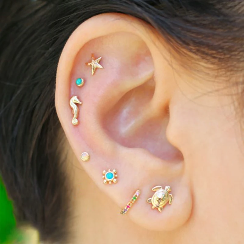 Серьги-гвоздики с перфорированным хрящевым покрытием женские, геоме...